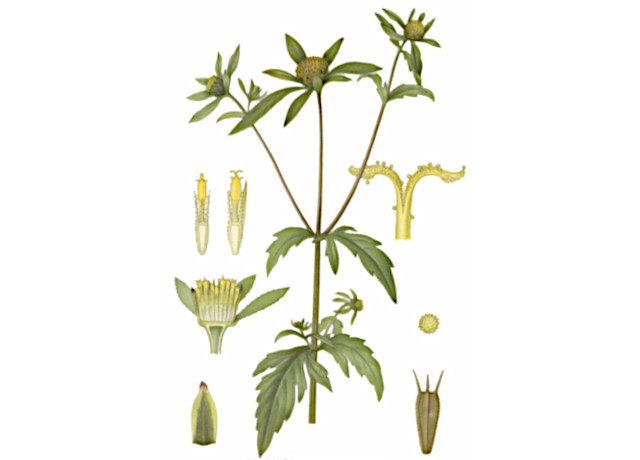 W skład surowca wchodzi olejek eteryczny, flawonoidy, garbniki, gorycze, śluzy, kwasy organiczne, witaminy (prowitamina A i wit. C) i sole mineralne.